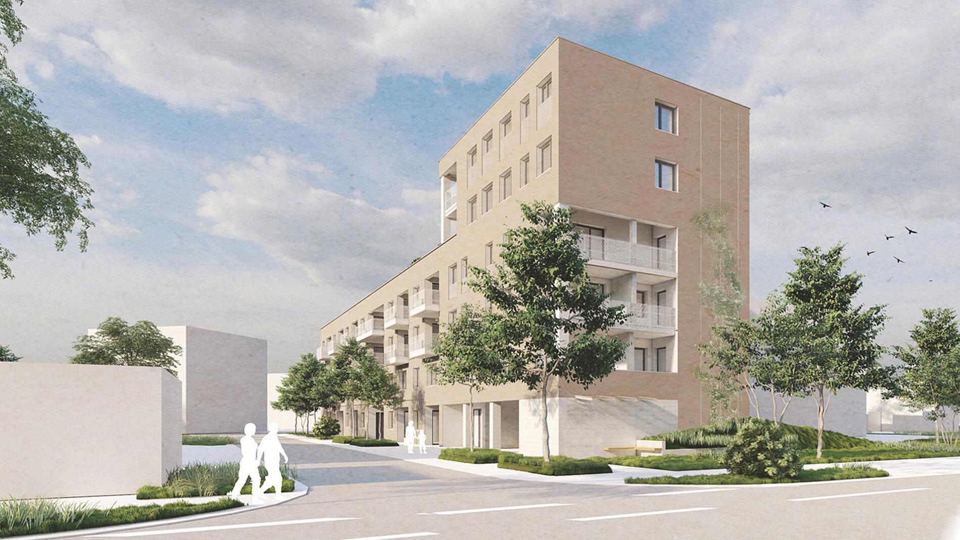 Unser Vorschlag konnte durch das Angebot straßenbegleitenden Townhouse-Maisonettewohnungen mit Privatgärten im Innenhof und Büroraum beim ebenerdigen Wohnungseingang überzeugen.